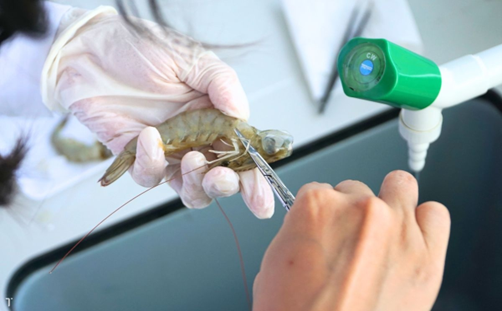 - Thu mẫu tôm: Chọn tôm bệnh hoặc tôm giống để kiểm tra, lấy gan tụy, mang, mô cơ hoặc toàn bộ cơ thể tôm post. Dụng cụ phải vô trùng, tránh dập mô và nhiễm chéo.