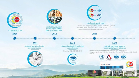Hơn 21 năm hình thành và phát triển, R.E.P Biotech đã dần khẳng định chất lượng và vị thế của một trong những nhà sản xuất Probiotic, chế phẩm dinh dưỡng- miễn dịch, premix và thuốc thú y cho vật nuôi. Chúng tôi luôn cố gắng cung cấp những giải pháp tốt nhất, hướng tới nền chăn nuôi bền vững nhằm tạo ra thực phẩm an toàn giúp nâng cao chất lượng cuộc sống.