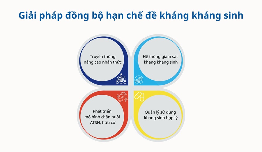 Bên cạnh đó, các cơ quan ban ngành đồng thời đưa ra các giải pháp nhằm hỗ trợ nhà chăn nuôi, doanh nghiệp thực hiện hóa mục tiêu hạn chế sử dụng kháng sinh trong chăn nuôi.