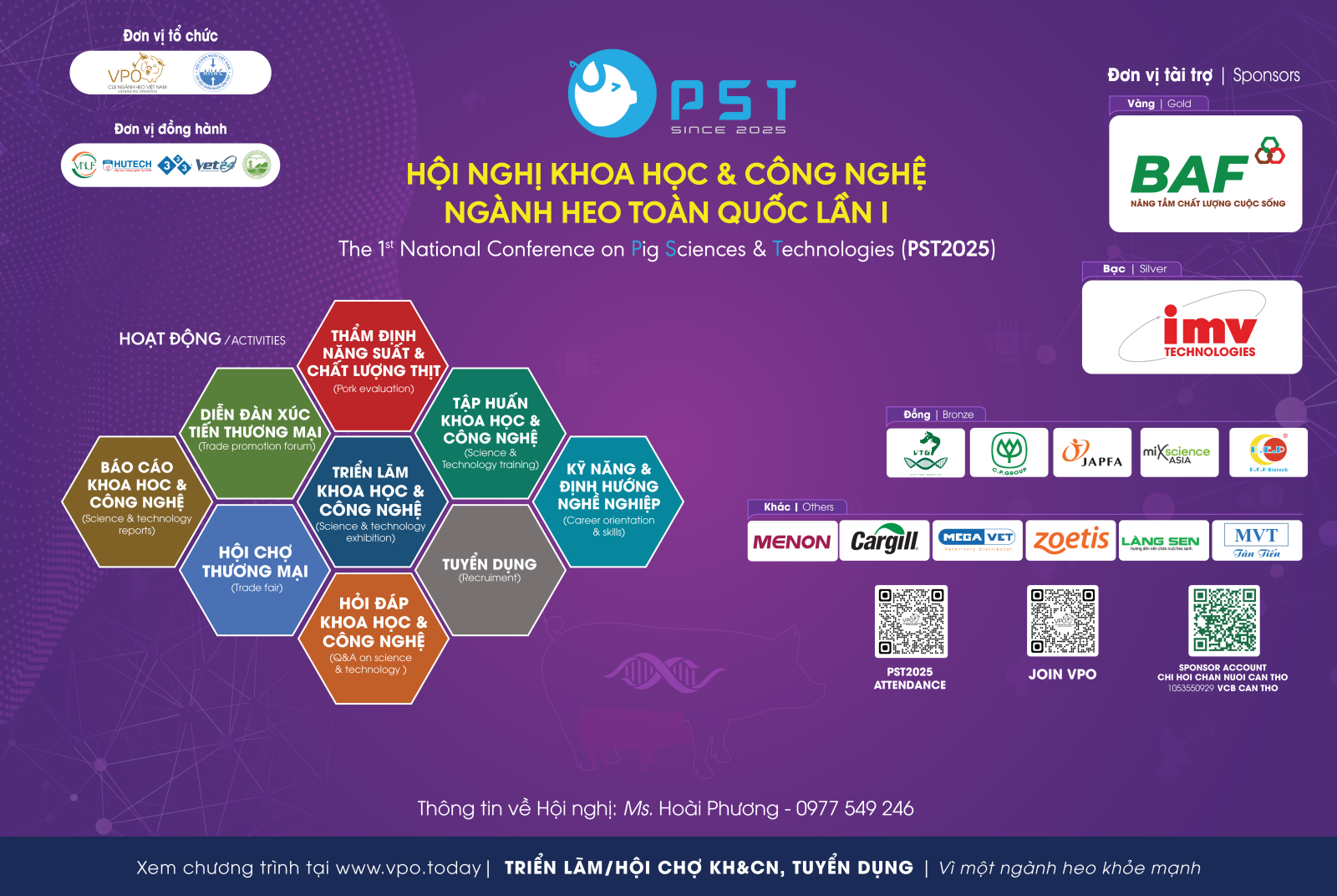 Đến với hội nghị là đến với không gian khoa học và công nghệ dành riêng cho tất cả những cá nhân tập thể hoạt động trong ngành heo. Từ những ứng dụng thực tiễn đến những giải pháp mới nhất đều được kể bởi các chuyên gia hàng đầu trong ngành thông qua các hoạt động và chủ đề.