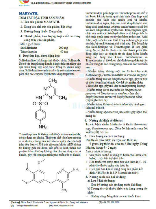 Cuộc sống tốt đẹp hơn vớicông nghệ sinh học GIỚI THIỆULịch Sử Hình Thành & Phát TriểnTầm Nhìn & Sứ MệnhThành tựu & Chứng nhậnThành viên R.E.P BiotechR.E.P TRADEHeoDinh DưỡngPremixGàDinh DưỡngPremixVịtDinh DưỡngPremixCútDinh DưỡngPremixBòDinh DưỡngPremixR.E.P AQUATômAN BÌNHHeoGàVịtCútBòR.E.P LABSTin TứcVề R.E.P BiotechVề Ngành Chăn NuôiĐánh giá của khách hàngHội Thảo Chuyên ĐềThư ViệnHình ẢnhVideoTuyển dụngLiên Hệ GIỚI THIỆULịch Sử Hình Thành & Phát TriểnTầm Nhìn & Sứ MệnhThành tựu & Chứng nhậnThành viên R.E.P BiotechR.E.P TRADEHeoDinh DưỡngPremixGàDinh DưỡngPremixVịtDinh DưỡngPremixCútDinh DưỡngPremixBòDinh DưỡngPremixR.E.P AQUATômAN BÌNHHeoGàVịtCútBòR.E.P LABSTin TứcVề R.E.P BiotechVề Ngành Chăn NuôiĐánh giá của khách hàngHội Thảo Chuyên ĐềThư ViệnHình ẢnhVideoTuyển dụngLiên Hệ Trang chủ / THUỐC THÚ Y Dinh Dưỡng Premix Dinh Dưỡng Premix Dinh Dưỡng Premix Dinh Dưỡng Premix Premix Dinh Dưỡng MARVATIL ĐẶC TRỊ CÁC BỆNH NHIỄM TRÙNG TRÊN CÁ Thông tin sản phẩm Thông tin dinh dưỡng Hướng dẫn sử dụng Tình trạng: Còn hàng Giá: Liên hệ Mua hàng Gọi để đặt ngayHotline : 0983 024 940 Sản phẩm liên quan tới vật nuôi bạn đang tìm Email Gọi ngay Kết nối zalo Messenger Copyright © 2020 R.E.P Biotech JSC TOP